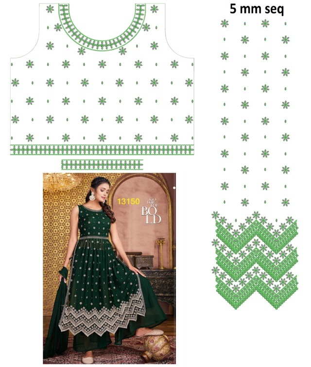5 mm seq fancy Anarkali readymade suit/duptta embroidery design