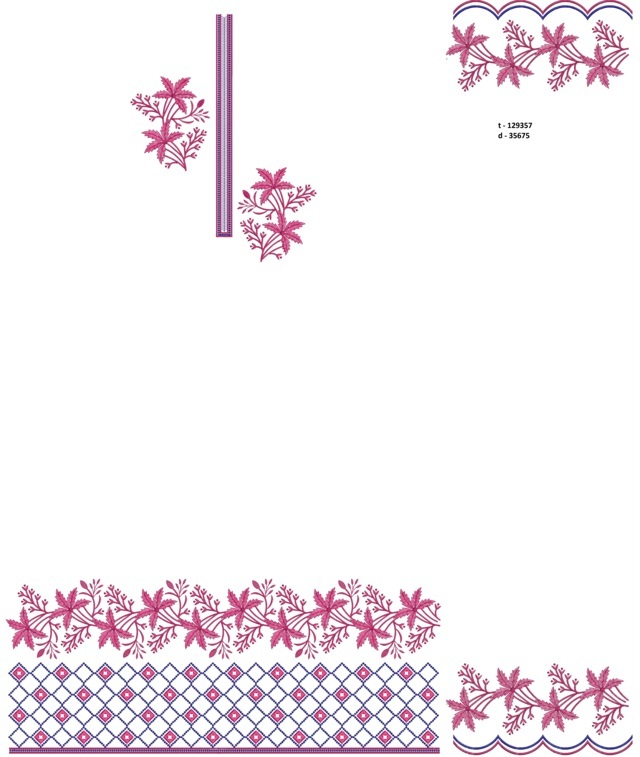 Coconut tress figure shape Neck butti lace Single head Top & Duppata Embroidery Design