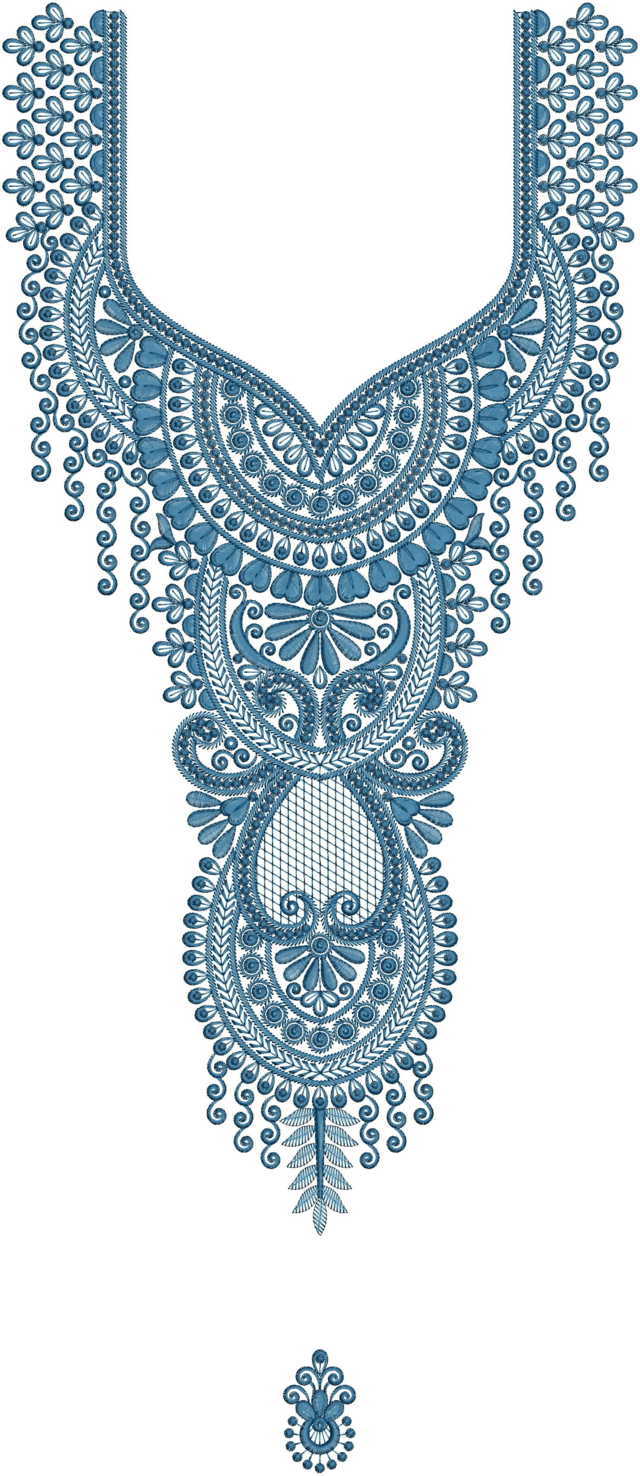 Fancy Neck butti lace Single head Top & Duppata Embroidery Design