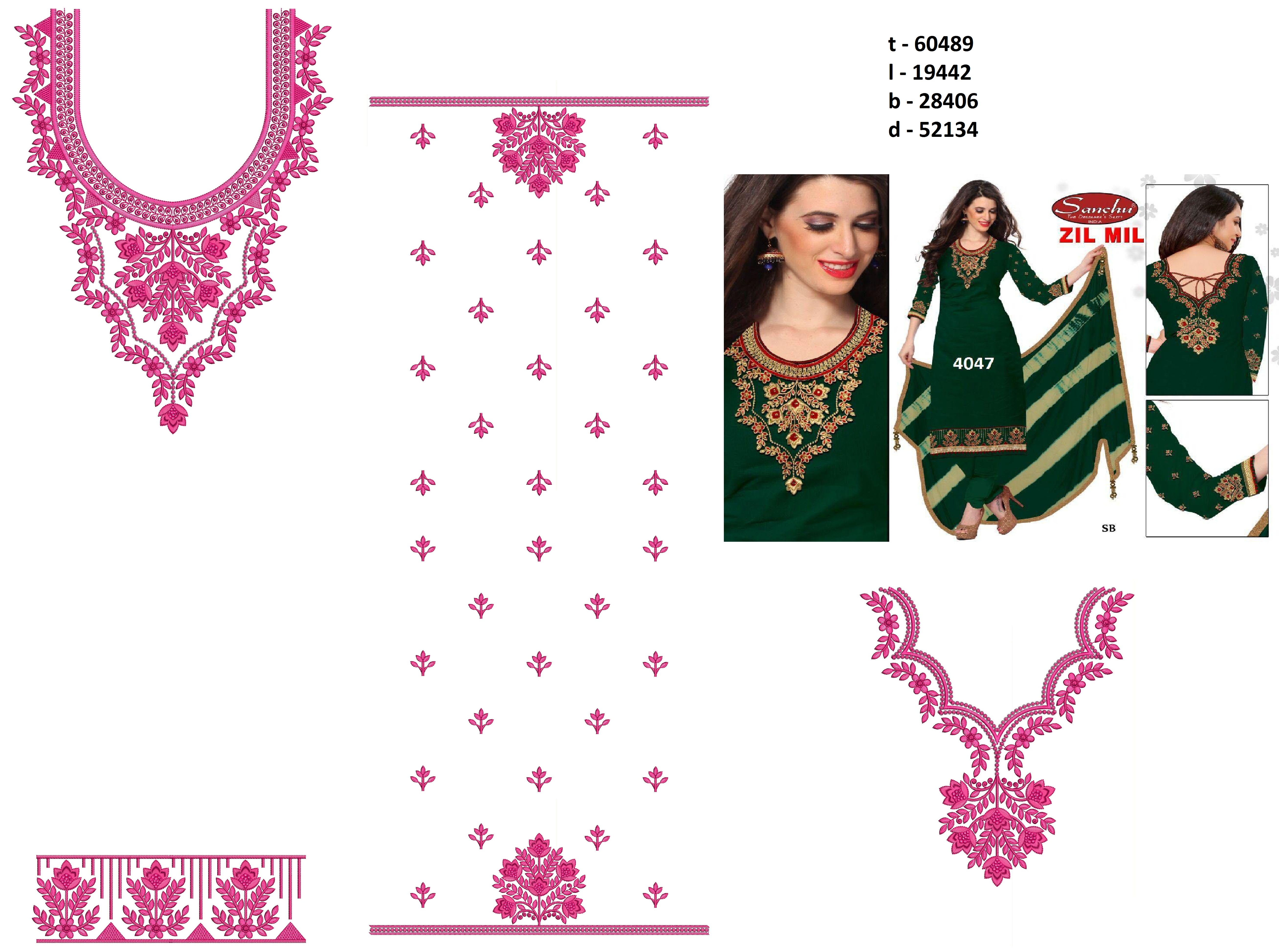 Fancy Neck butti lace Single head Top & Duppata Embroidery Design