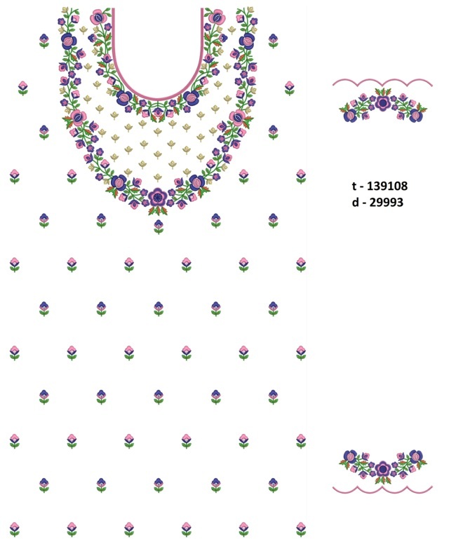 Fancy small flowers Neck butti lace Single head Top & Duppata Embroidery Design