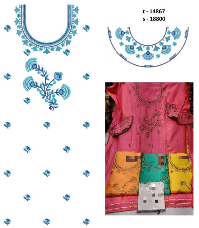 Flowers concept Neck Butti Lace Single Head top & Duptta Embroidery Design