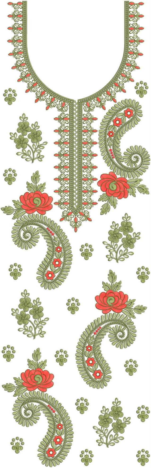 Mango shape with lots flowers Neck butti lace Single head Top & Duppata Embroidery Design