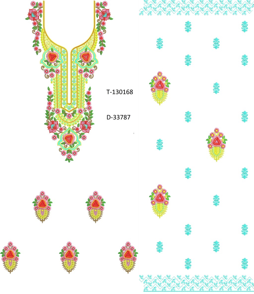 , NECK-BUTTI Single head Top & Duppata Embroidery Design