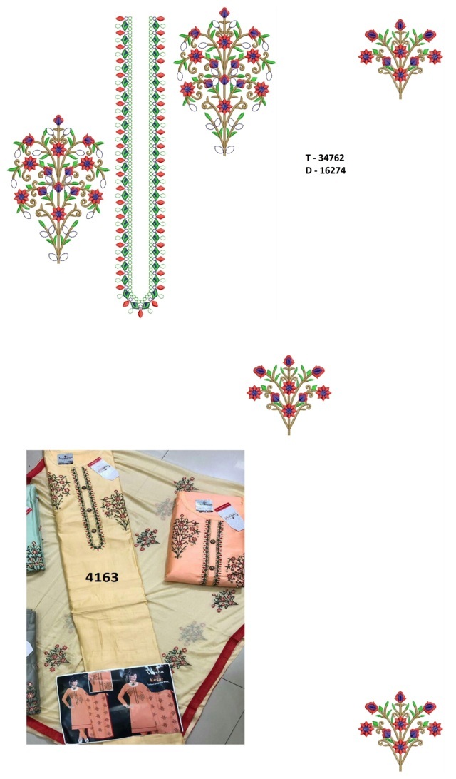 New brand concept Neck butti lace Single head Top & Duppata Embroidery Design