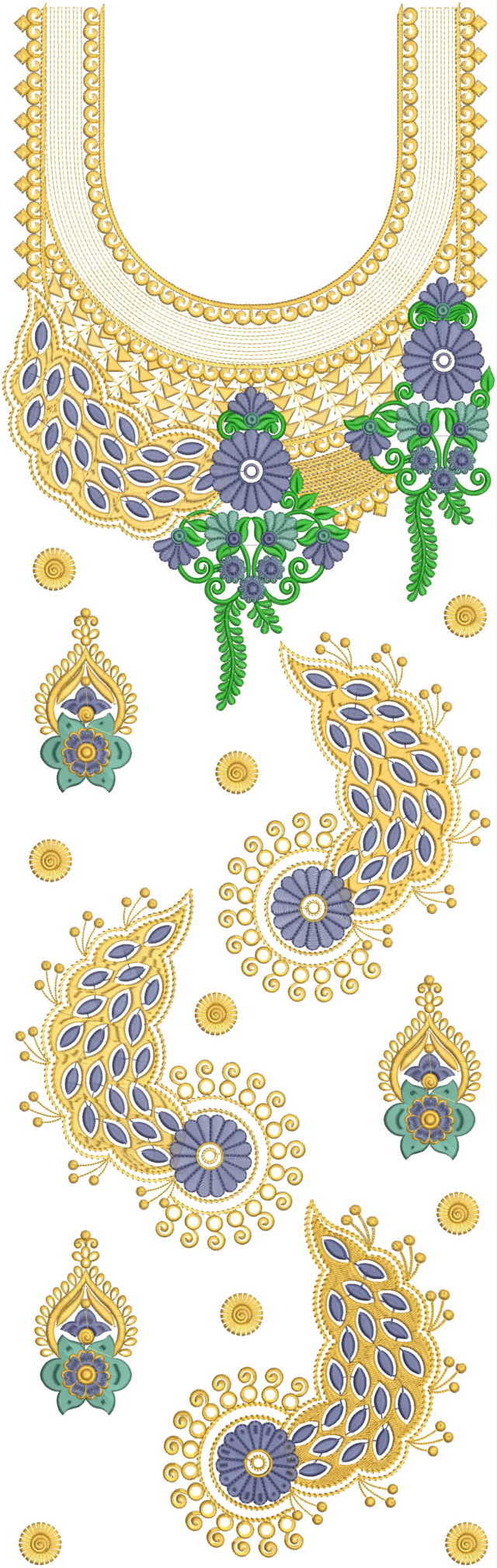 Peacock figure shape Neck butti lace Single head Top & Duppata Embroidery Design