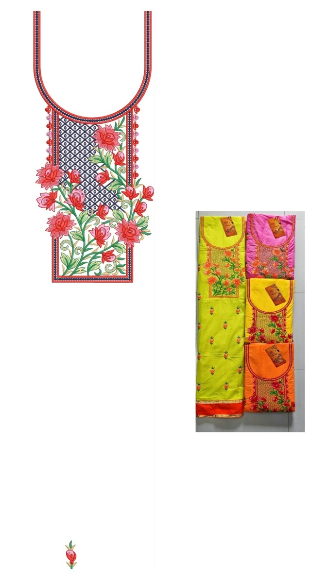 Rectangle party wear flowers Neck butti lace Single head Top & Duppata Embroidery Design