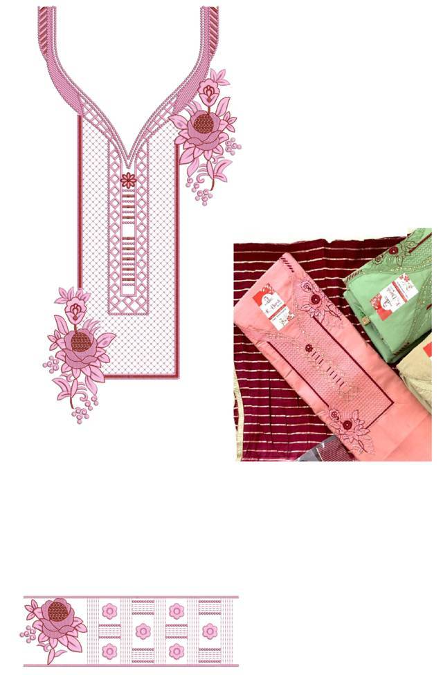 Rose flowers concept Neck Butti Lace Single Head top & Duptta Embroidery Design