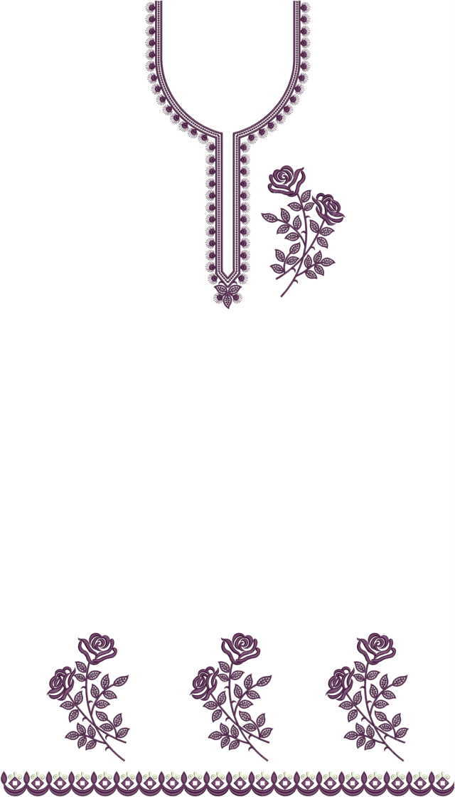 Royal rose flowers with leaf shape Neck butti lace Single head Top & Duppata Embroidery Design