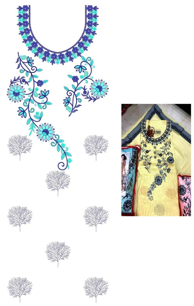 Tress butta fancy Neck butti lace Single head Top & Duppata Embroidery Design