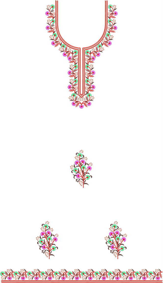 Unique colour full flowers Neck butti lace Single head Top & Duppata Embroidery Design