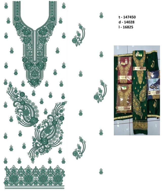 fancy Neck butti lace Single head Top & Duppata Embroidery Design