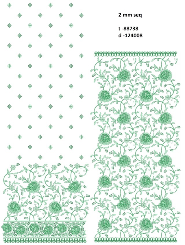 2 mm seq flowers pattern daman top/duptta embroidery design
