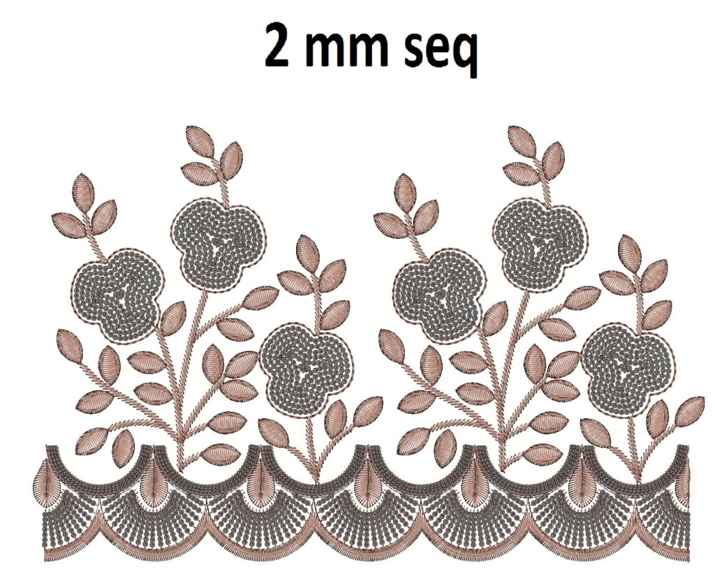 2 mm seq flowers pattern lace/border embroidery design