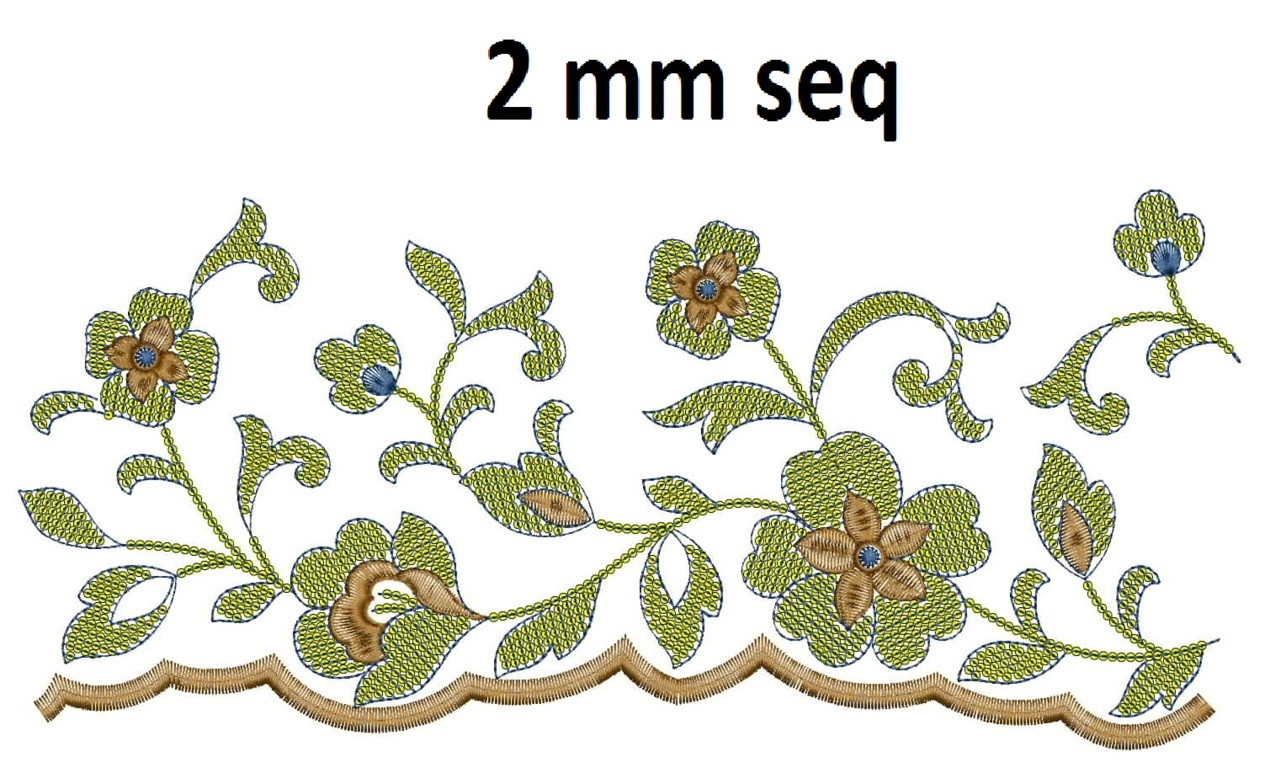 2 mm seq flowers pattern lace/border embroidery design