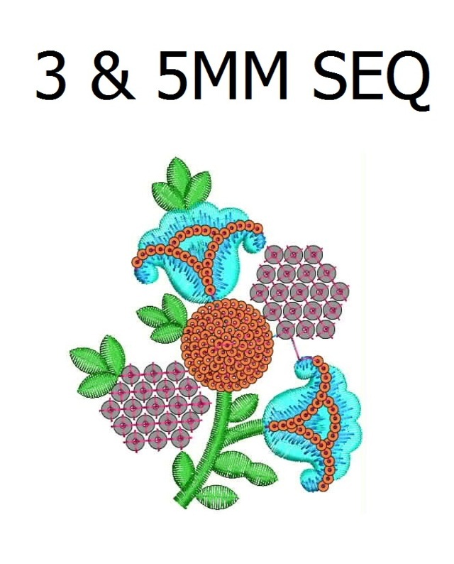 3&5mm dabal sequins unique flower concept Butta Embroidery Design