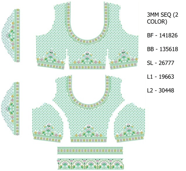 3 MM Sequins Blouse / Choli Embroidery Design