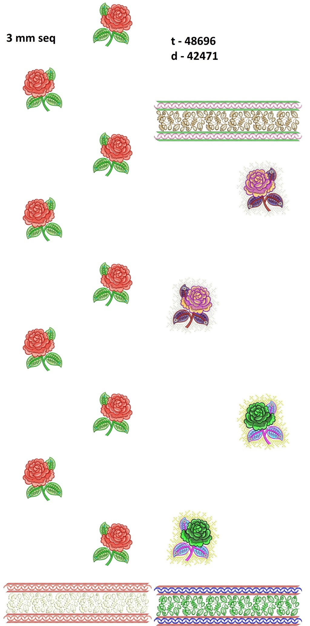3 mm mal red rose flowers concept seq daman top /duptta embrpidery design