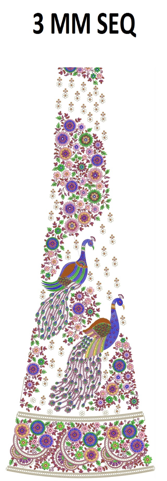 3 mm seq Fancy peacock figure concept lehengha/kali embroidery design