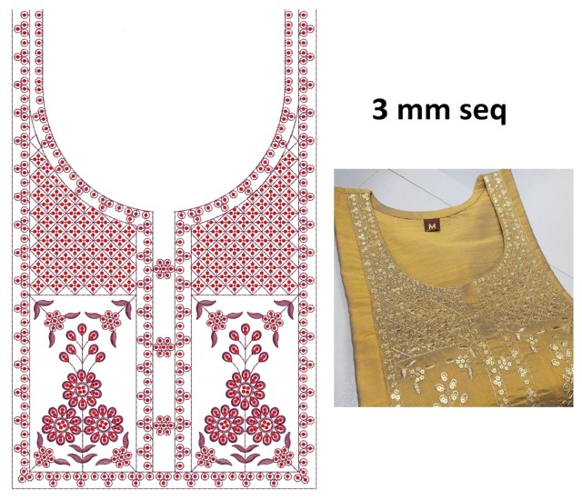 3 mm seq Indian Suit neck kurti Embroidery Design