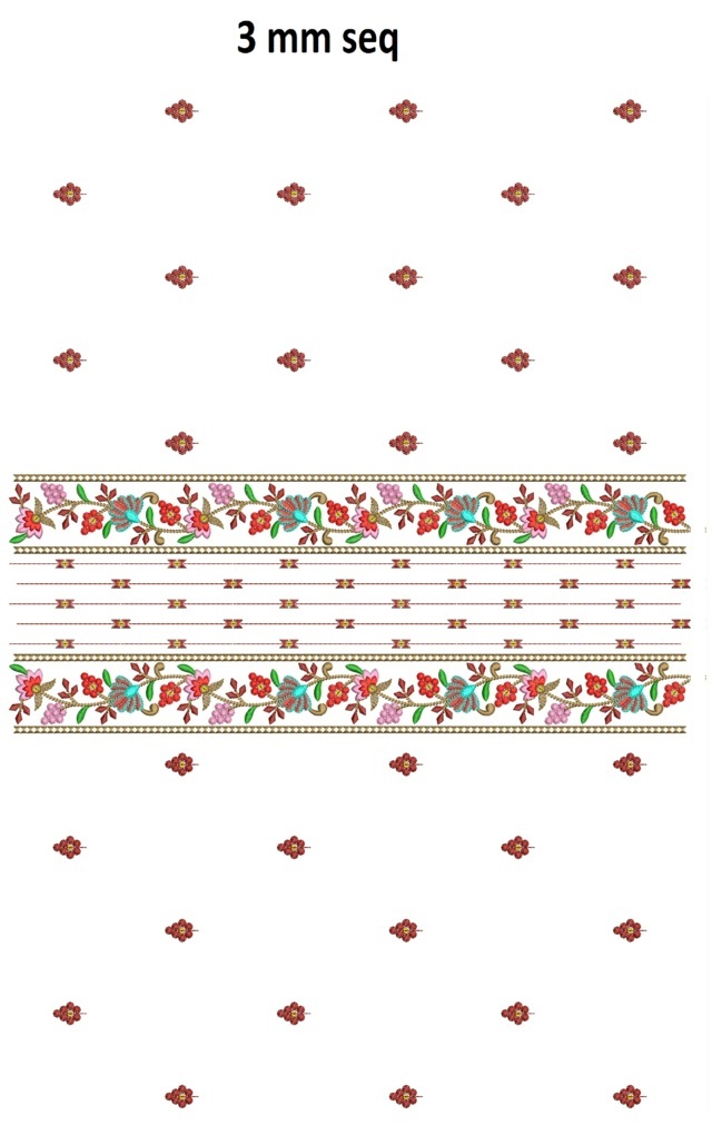 3 mm seq center penal long suit penal top/duptta embreoidery design