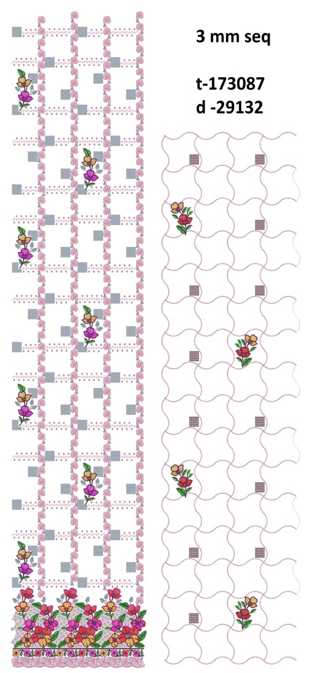 3 mm seq color full flowers concept daman top/duptta embroidery design