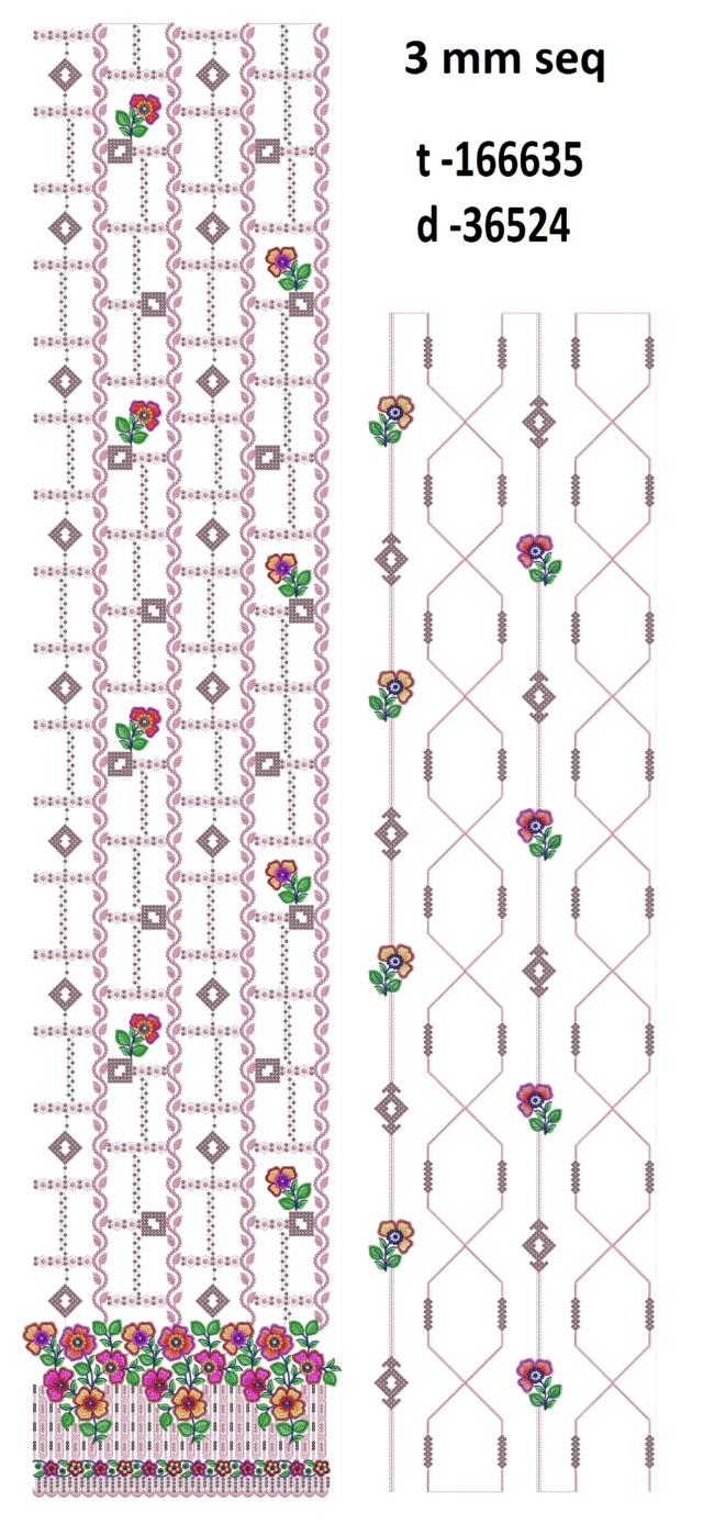 3 mm seq color full flowers concept daman top/duptta embroidery design
