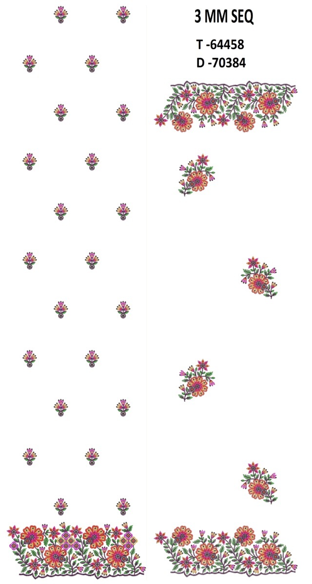3 mm seq colourfull flowers concept daman top/duptta embroidery design