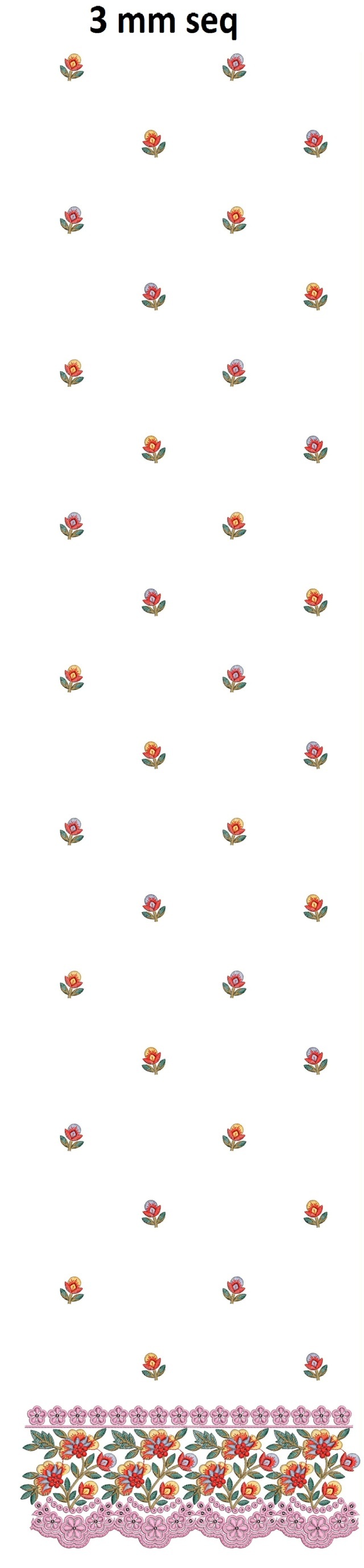 3 mm seq cut work flowers butti daman concept top/duptta embroidery design