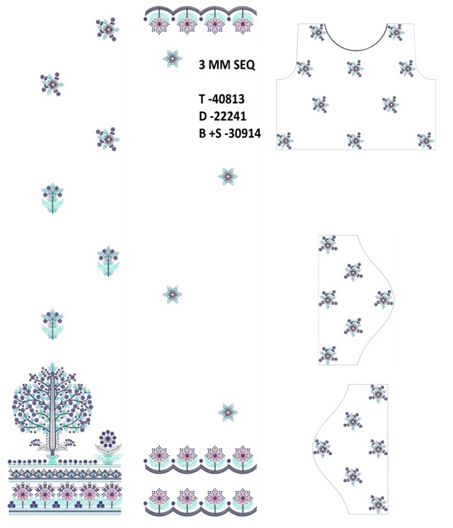 3 mm seq fashionable tree concept daman top/duptta embroidery design