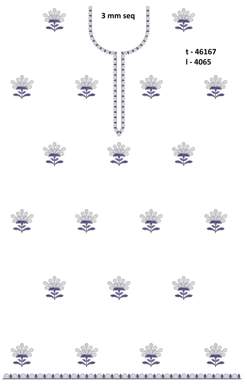 3 mm seq flowers concept Fancy Neck butti lace single head top/duptta embroidery design