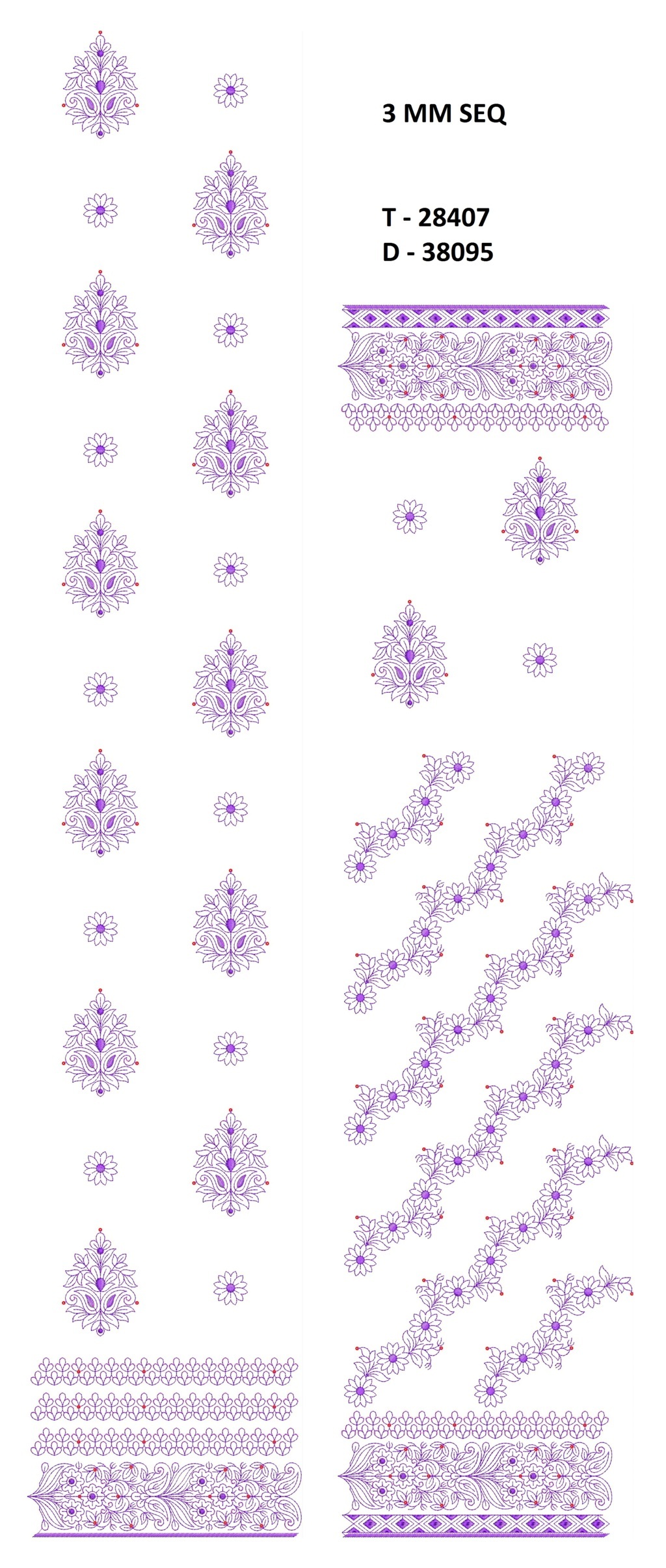 3 mm seq flowers mango butti concept daman top/duptta embroidery design