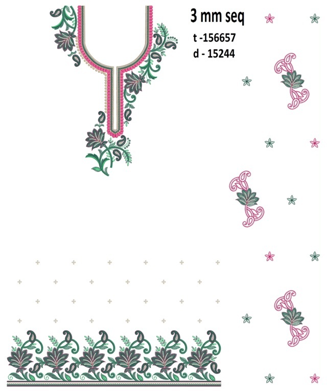 3 mm seq flowers mango concept panjabi pakistani suit/duptta embroidery design