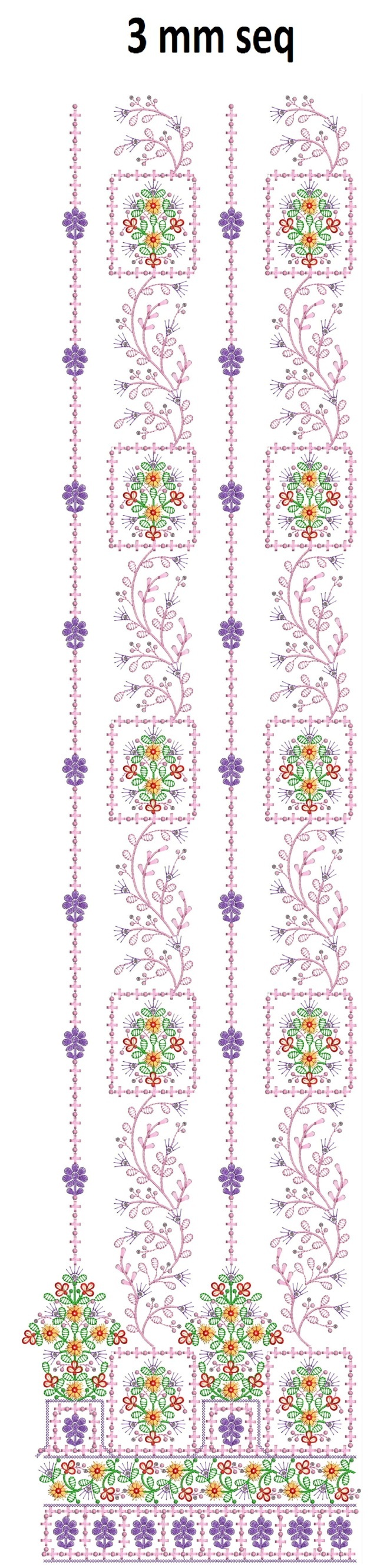 3 mm seq heavy flowers daman jaal top/duptta embroidery design