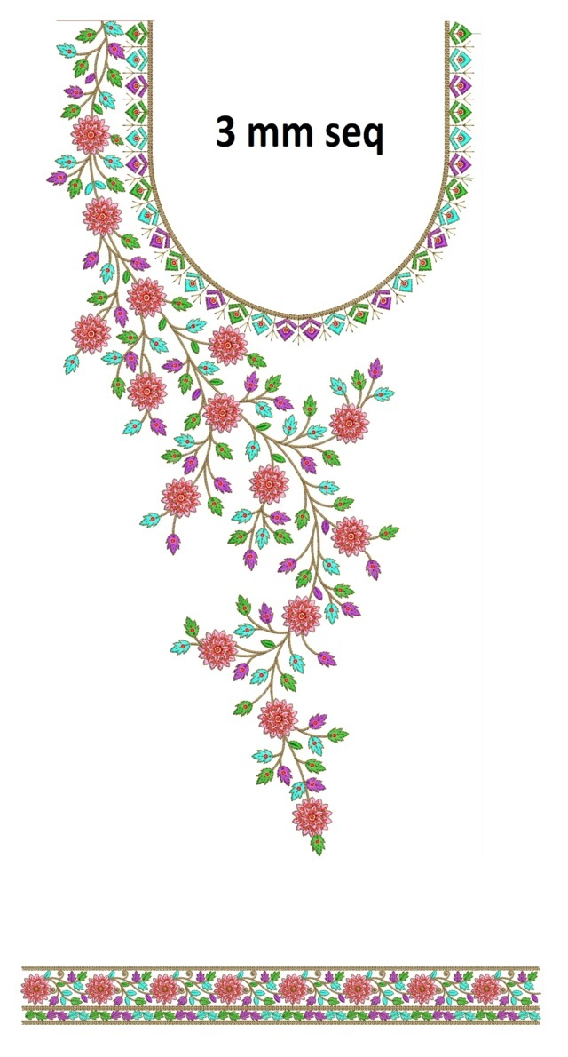 3 mm seq heavy suit neck line dress kurti embroidery design