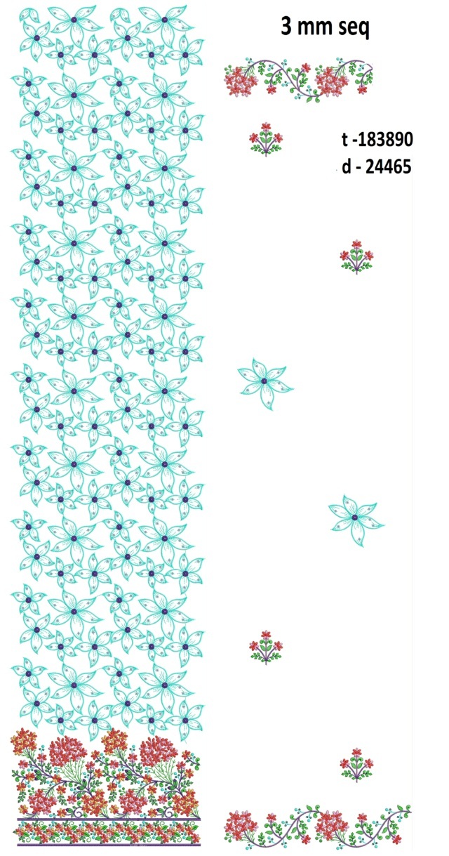 3 mm seq new pattern flowers concept daman top/duptta embroidery design