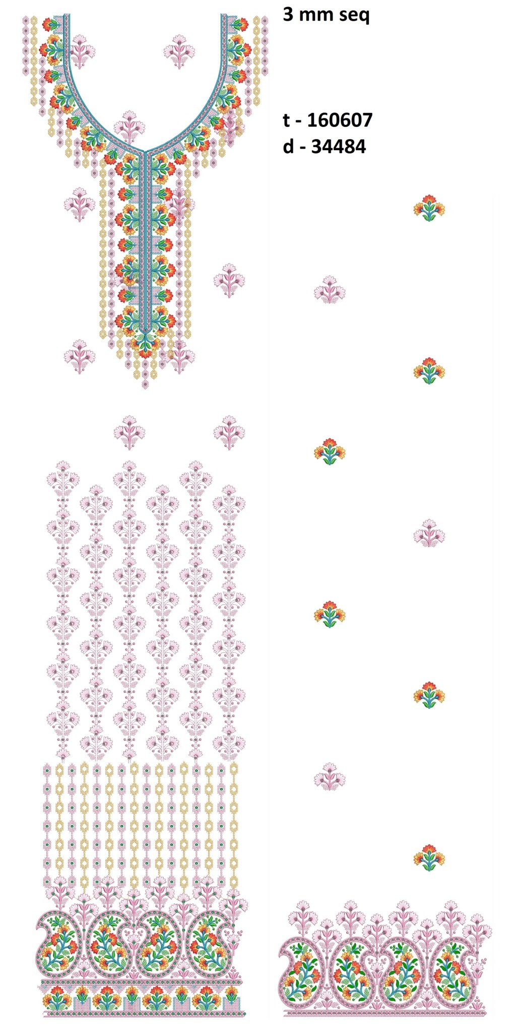 3 mm seq panjabi pakistani suit/duptta embroidery design