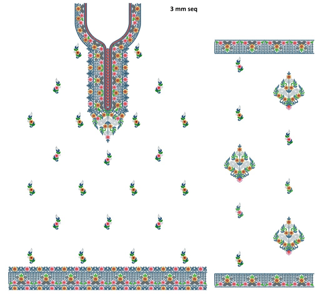 3 mm seq panjabi pakistani suit/duptta embroidery design