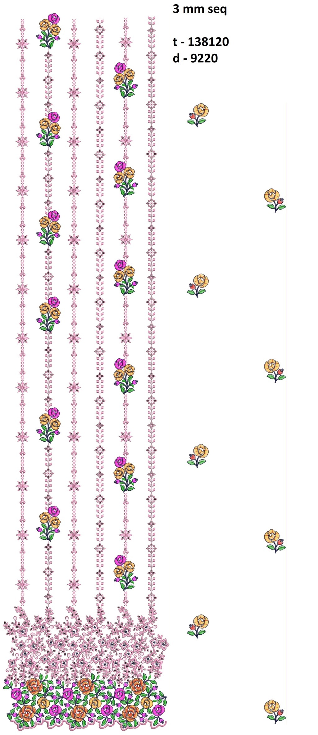 3 mm seq rose flowers concept daman top/duptta embroidery design