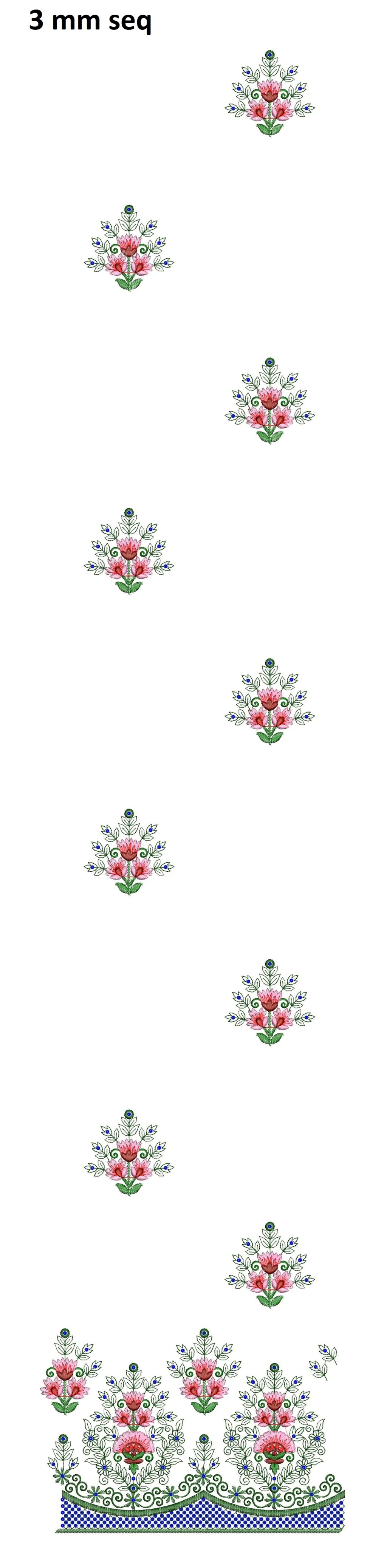 3 mm seq shiroski daman flowers concept top/duptta embroidery design