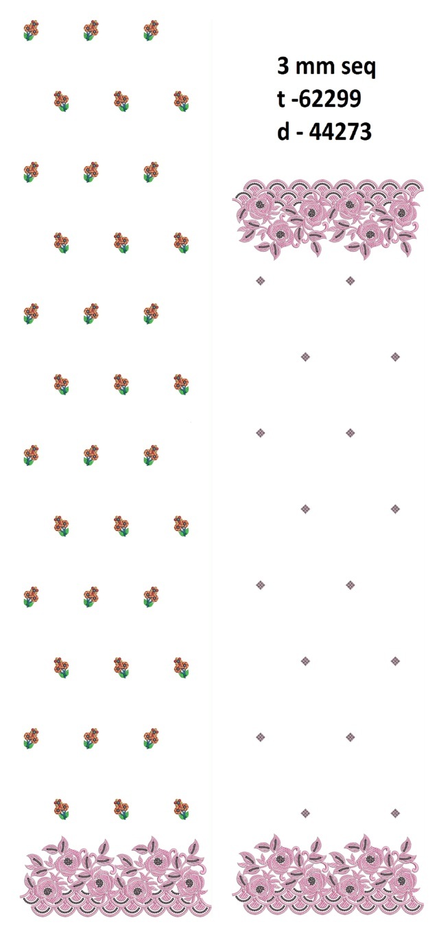 3 mm seq small butti rose flowers concept daman top/duptta embroidery design