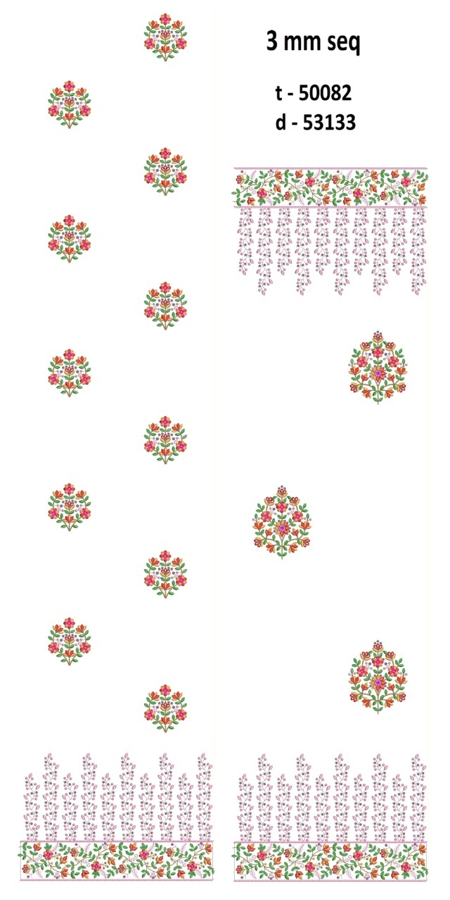 3 mm seq small flowers butta concept daman top/duptta embroidery design
