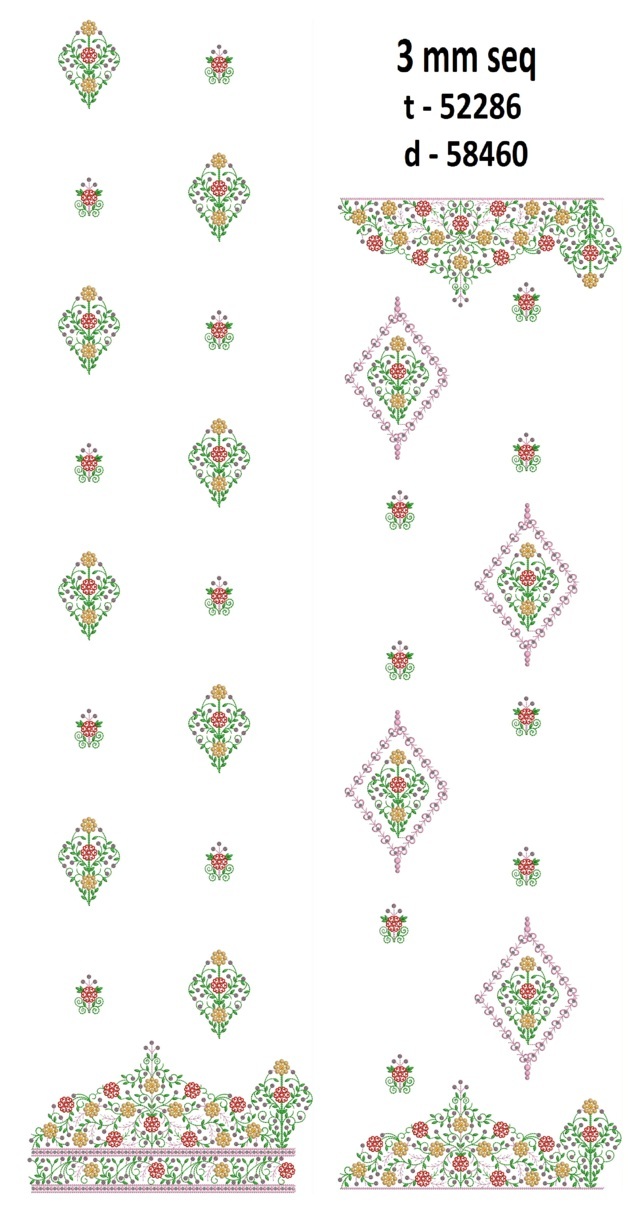 3 mm seq small flowers butti concept daman top/duptta embroidery design