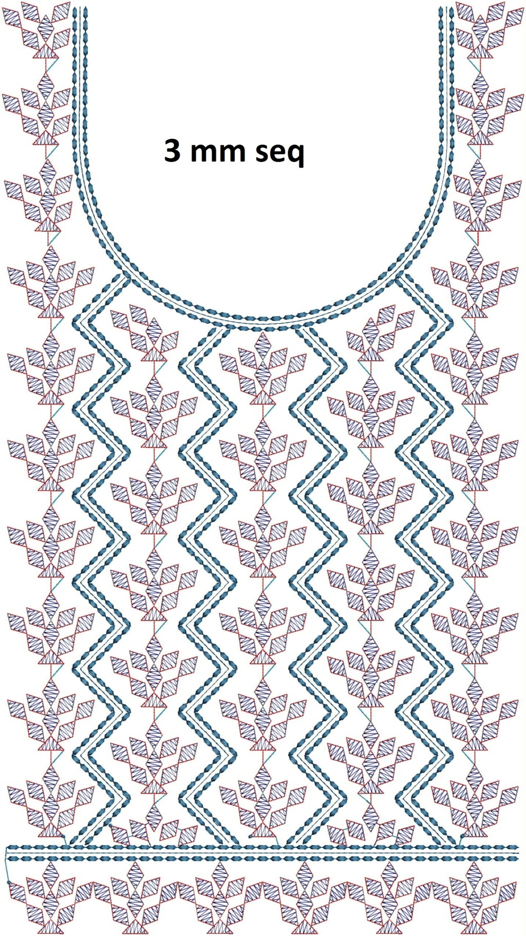 3 mm seq square neck kurti embroidery design