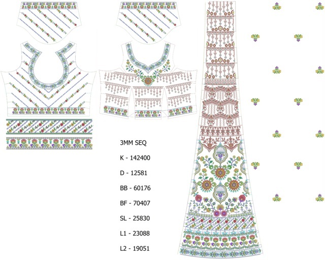 3mm sequins Beautiful Lehengha / kali Embroidery Design