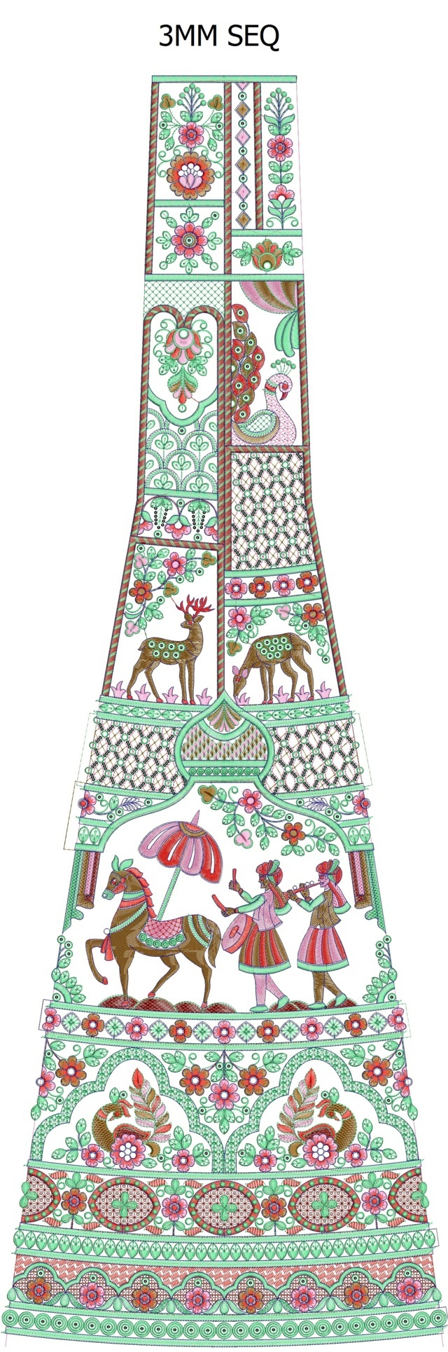 3mm sequins fancy bridal Lehengha / kali Embroidery Design