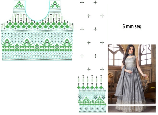 5 mm seq Anarkali readymade suit/duptta embroidery design