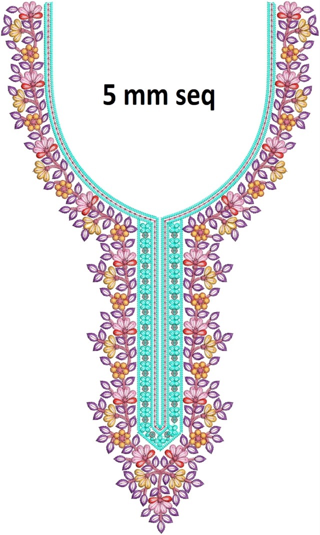 5 mm seq flowers concept neck /gala embroidery design