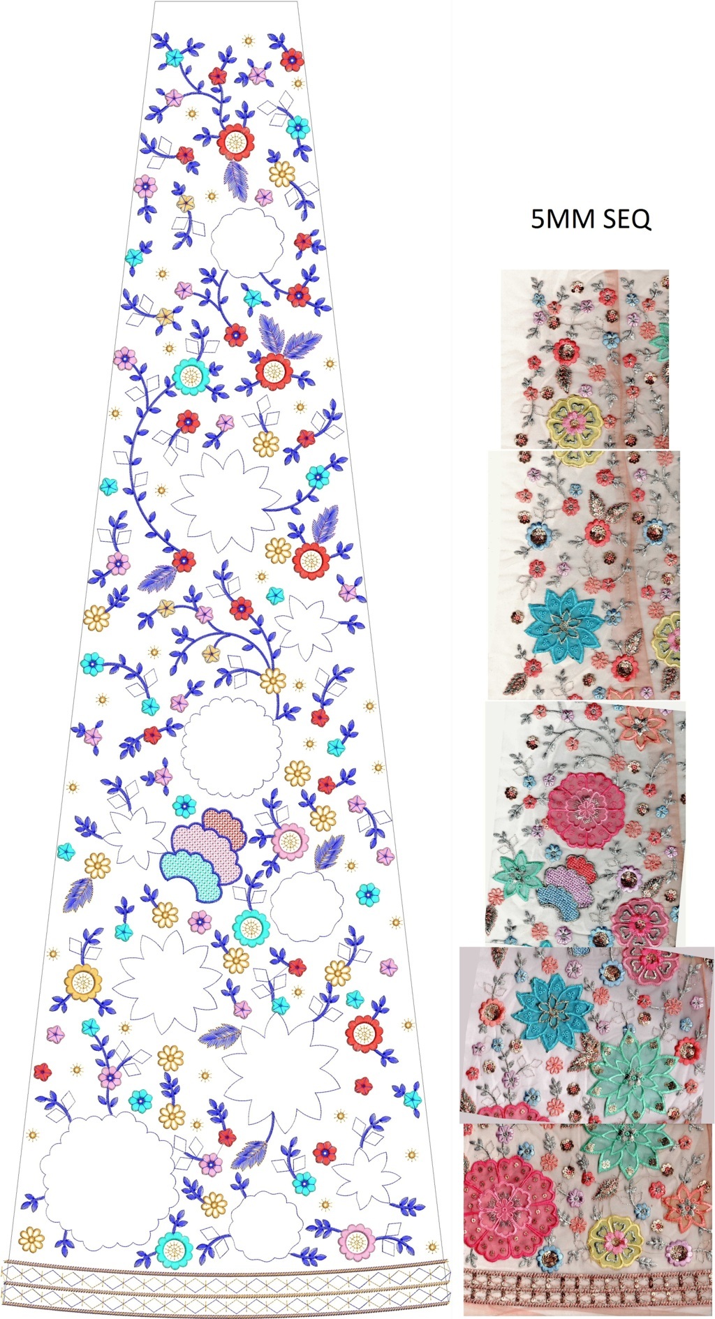 5MM Sequins fancy lehenga/kali embroidery design