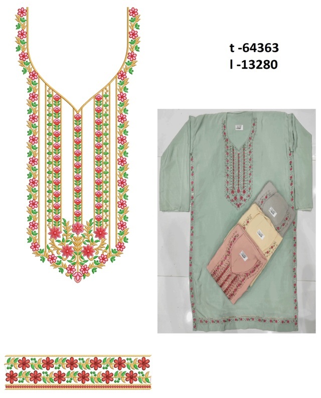 Classic Neck with laceEmbroidery Design